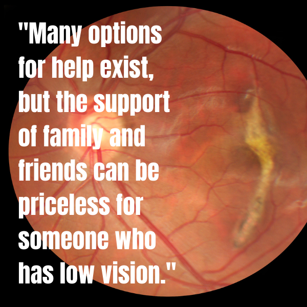 Improving the power of home and office lights may facilitate the completion of daily activities while reducing the chance of accidents. Finding a shuttle or other public transport is a convenient option for those who find it hard to see while driving, or for those who no longer drive. Many options for help exist, but the support of family and friends can be priceless for someone who has low vision.